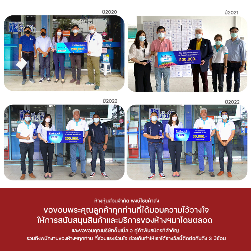 - The Best Performance of Double A DISTRIBUTOR 3 ปีซ้อน!! (ปี2020-2022)