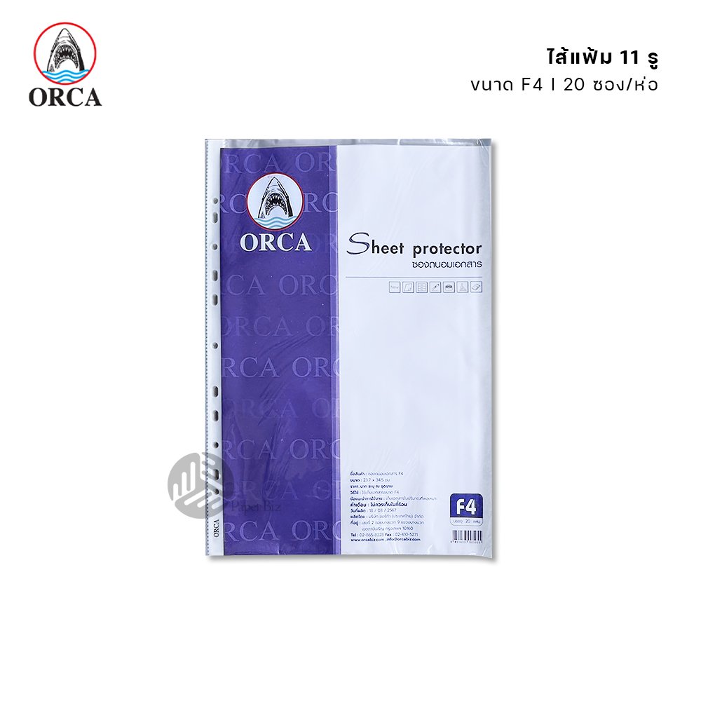 (ยกห่อ) 20 ซอง Orca ไส้แฟ้ม แฟ้มซอง 11 รู ขนาด F4 (23.7 x 34.5 cm.)