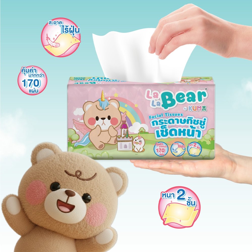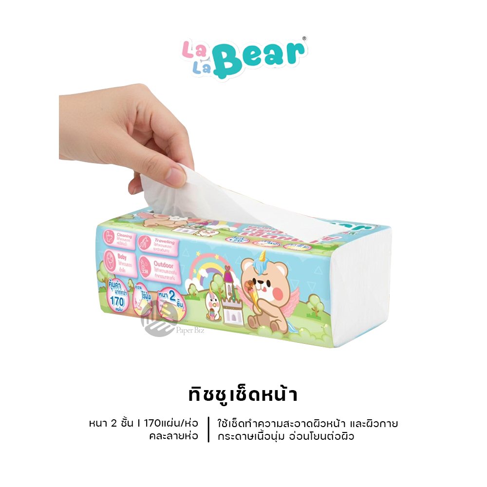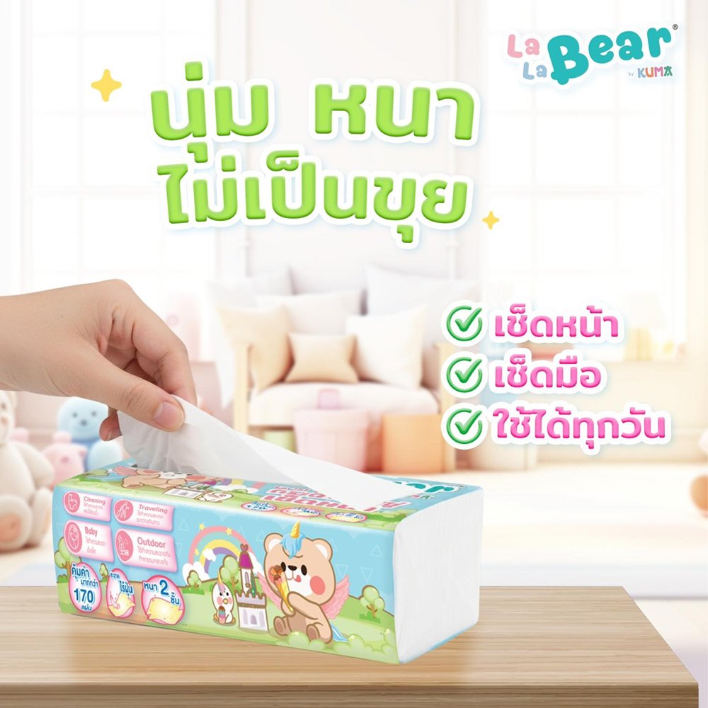 Lalabear ทิชชู่ กระดาษเช็ดหน้า หนา 2 ชั้น 170แผ่น/ห่อ